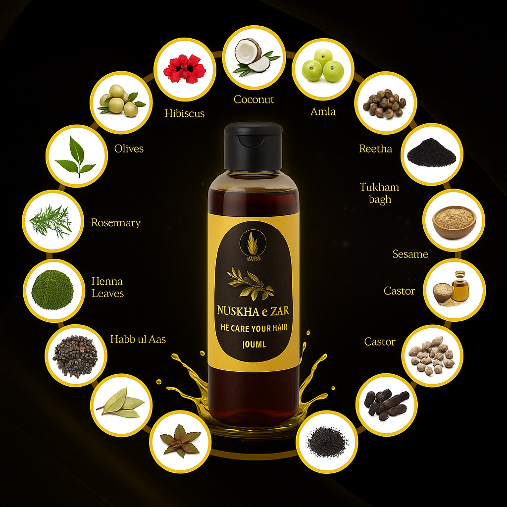 Nuskha-e-Zar β Pure herbal care for strong, shiny hair Oil.
